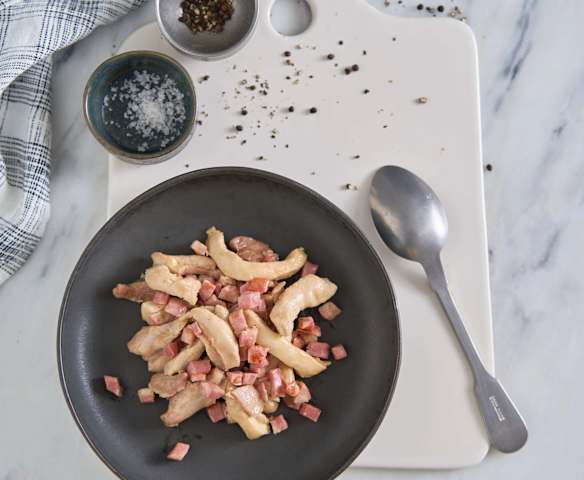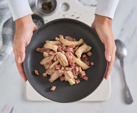 250 g peito de frango, cortado em tiras (1.5 cm x 3-4 cm aprox.), seca com papel toalhasobrecoxa de frango sem osso, cortada em tiras (1.5 cm x 3-4 cm aprox.), seca com papel toalha250 g