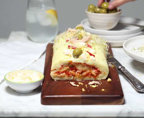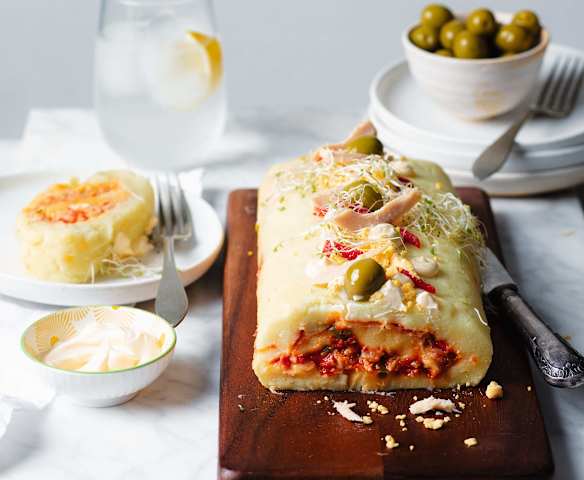 Patatas fritas con beicon y queso (bacon cheese fries) y salsa ranchera