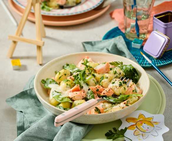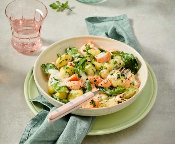 Gnocchi mit Lachs und Spinat in Zitronen-Kräuter-Sauce