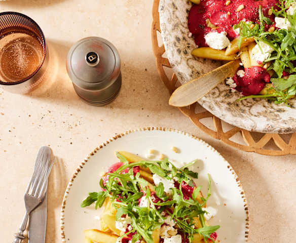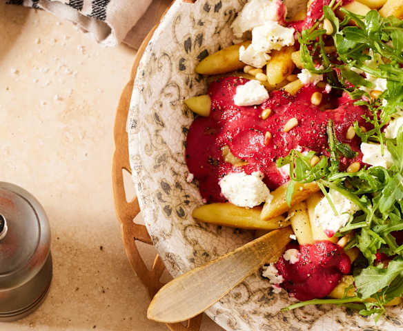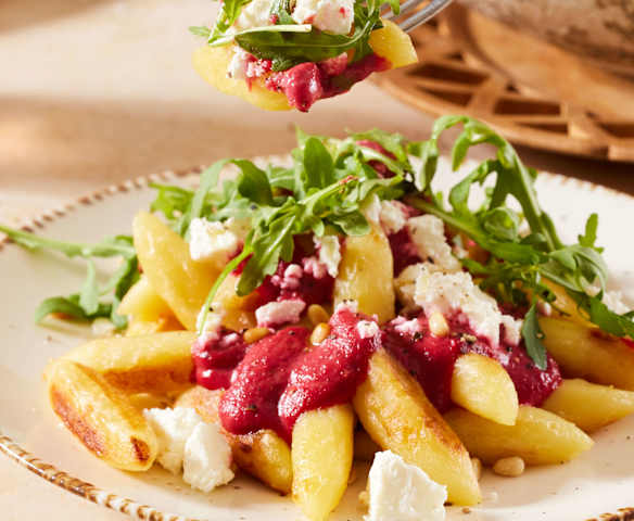 Schupfnudeln mit Rote-Bete-Sauce, Feta und Rucola
