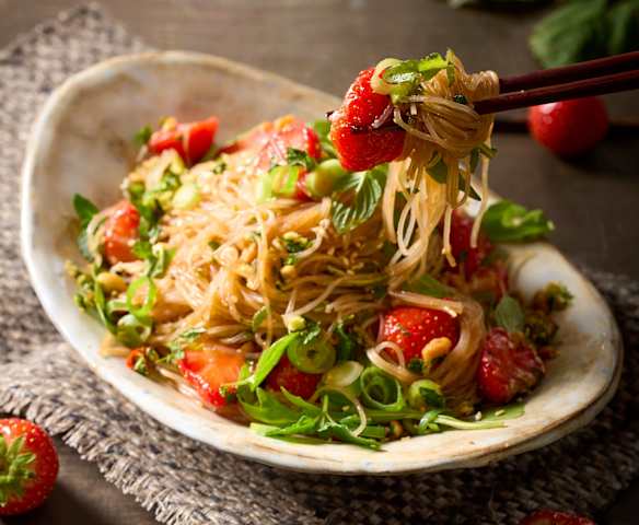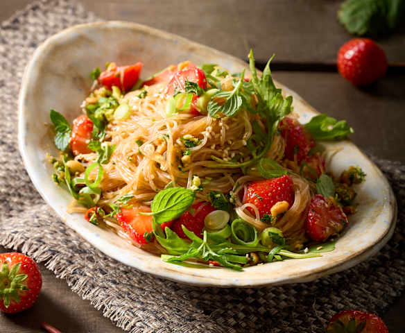 Glasnudel-Kräuter-Salat mit Ponzu-Erdbeeren und Erdnüssen