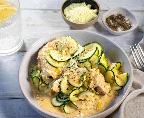 Lemon pepper chicken with zoodles (Thermomix® Spiralizer, using modes)