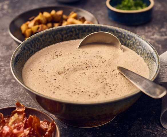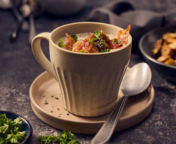 Cappuccino von Waldpilzen mit Serrano-Chips