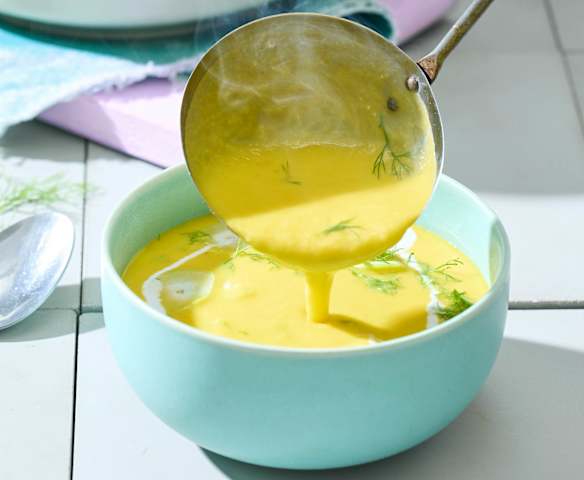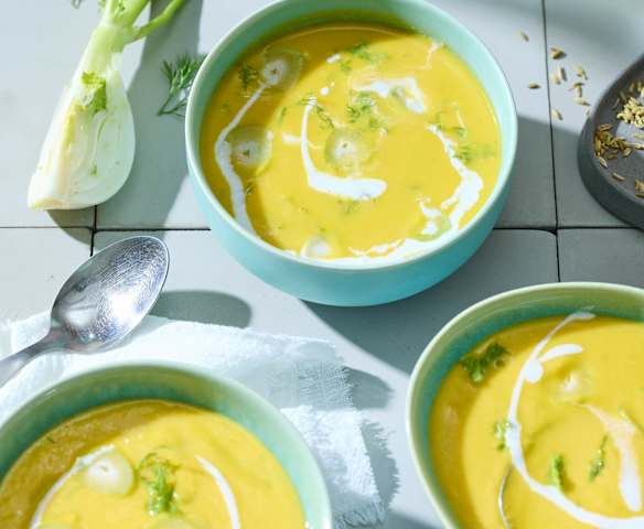 Süßkartoffel-Kürbis-Suppe mit Kräutercroûtons