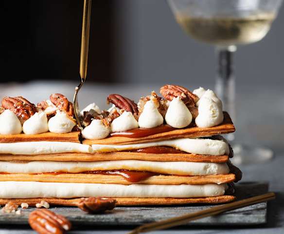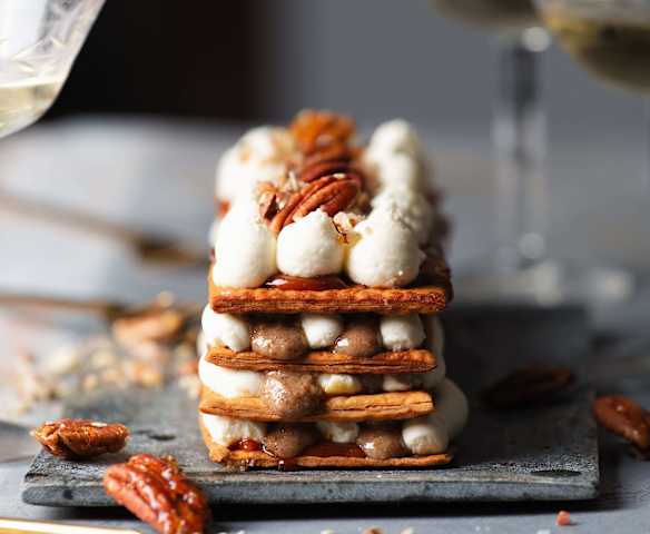 Vanille-Mille-feuille mit Karamell und Pecannüssen