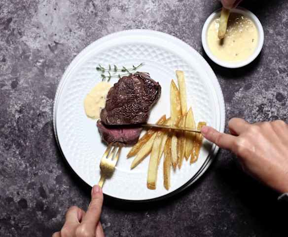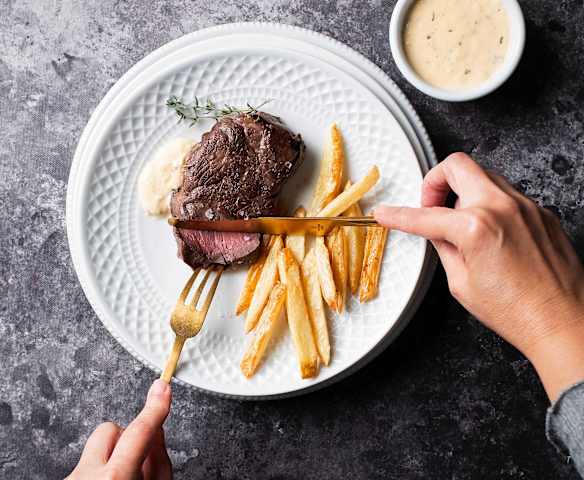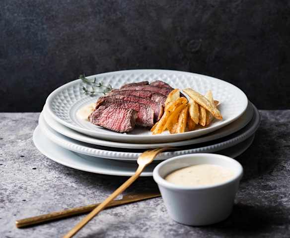 Rosa gebratene Rindersteaks mit Sauce Béarnaise