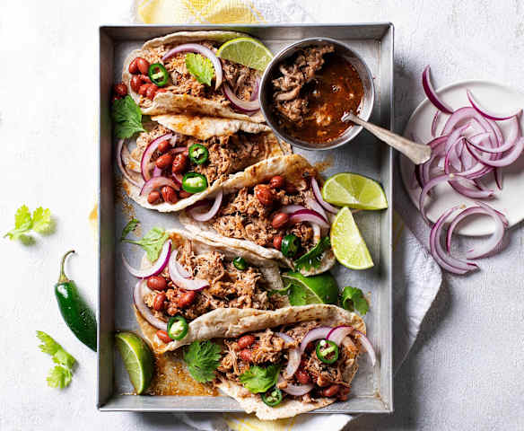 Τάκος ολικής αλέσεως με pulled pork σε σάλτσα μπύρας