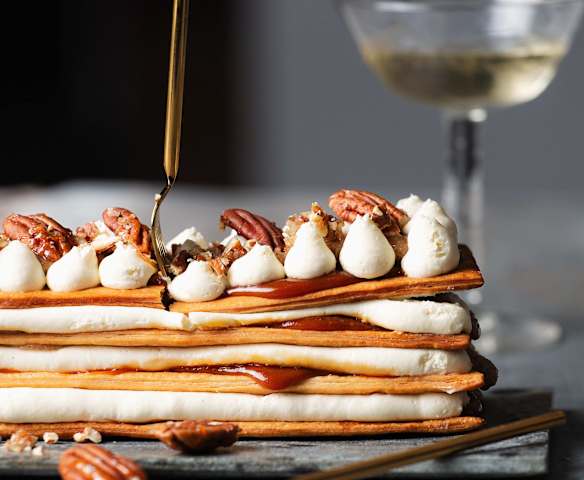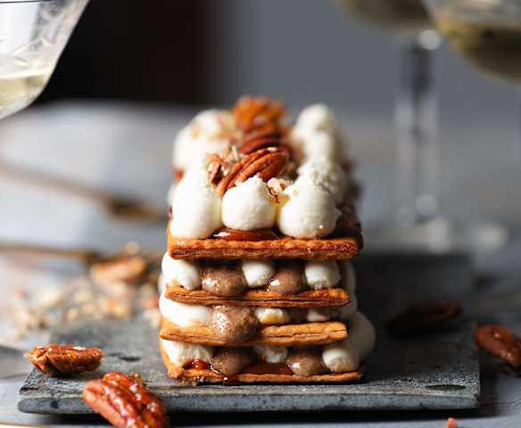 Μιλφέιγ βανίλιας με καραμέλα και καρύδια πεκάν