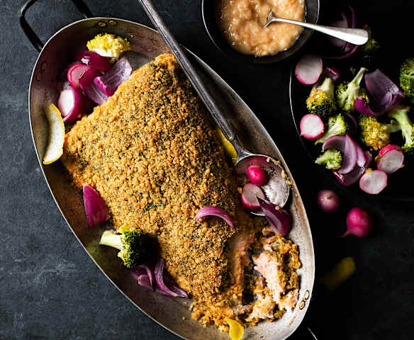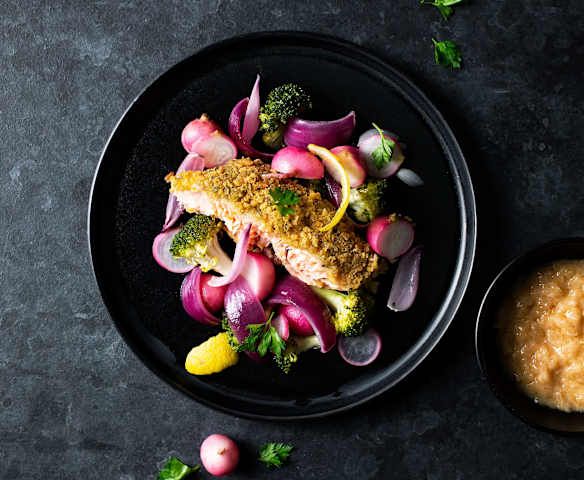 Crispy Parmesan Salmon with Vegetables and Lemon Cream Sauce