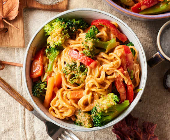 Mie-Nudeln mit Gemüse in Kokos-Erdnuss-Sauce