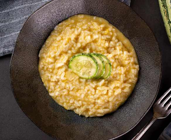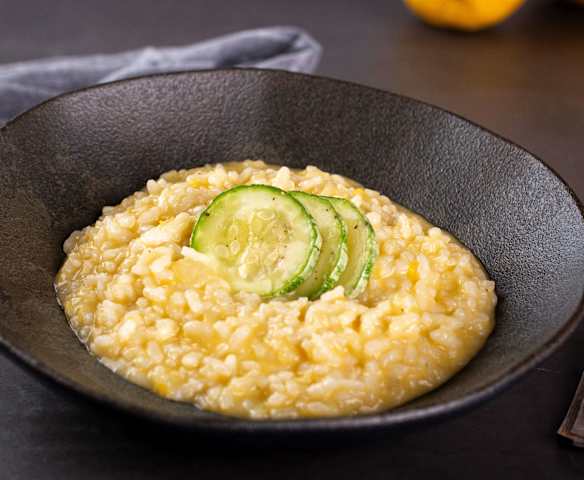 Risoto ao limone com abobrinhas no vapor