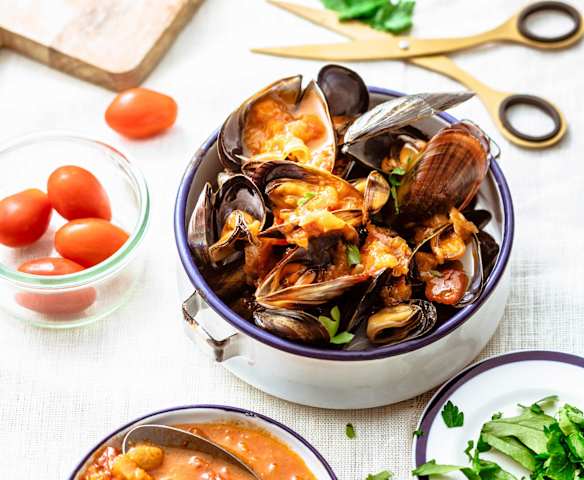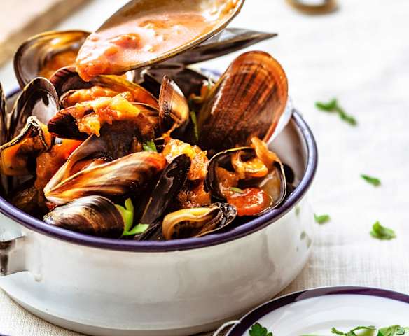 fresh mussels, well scrubbed and debearded in the shell32 oz