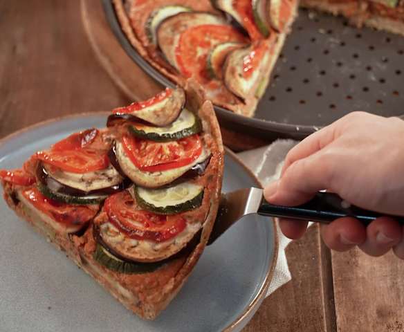 Spargel-Flammkuchen mit Kräutersauce und Schinken