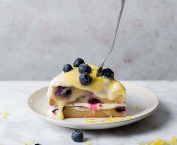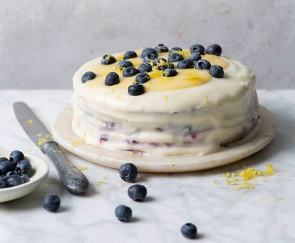 Blueberry Cake with Cream Cheese Frosting and Lemon Curd