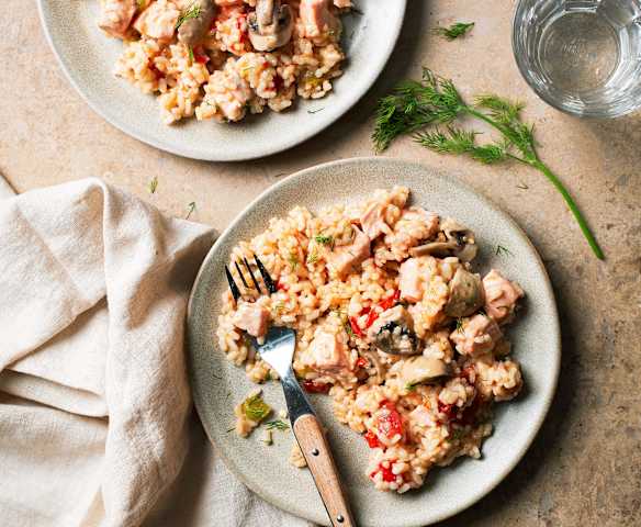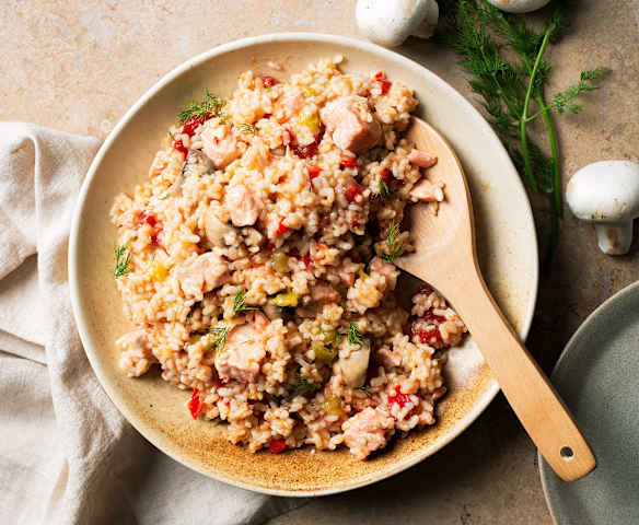 Basilikumrisotto mit Schmortomaten und Gemüse