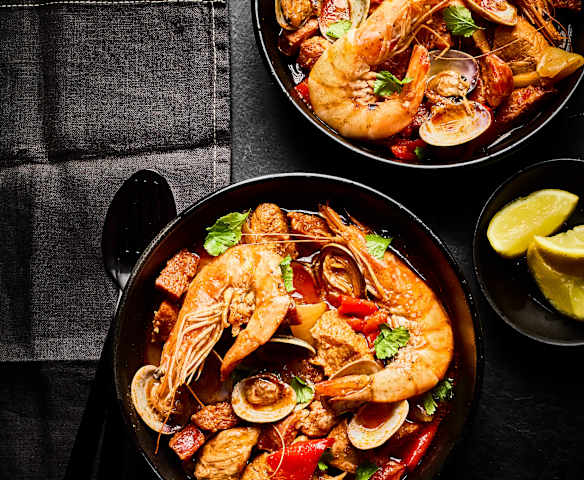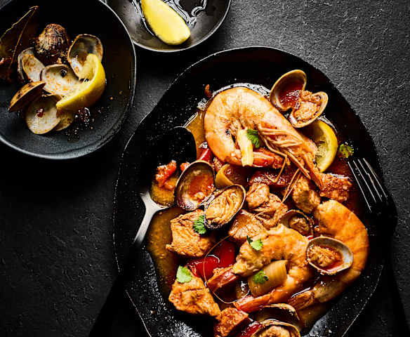 Pescado al horno con camarones, verduras y arroz basmati TM6