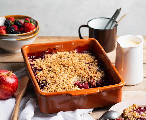 Sommerfrüchte-Crumble mit Vanillesauce