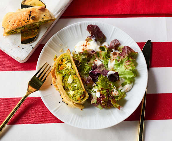 Gemüsestrudel mit Knoblauchsauce