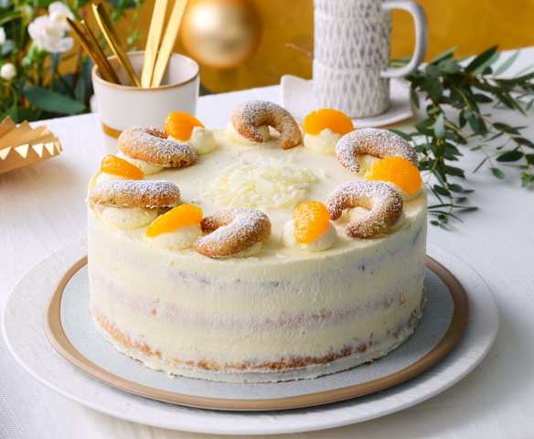 Vanillekipferltorte mit Mandarinen