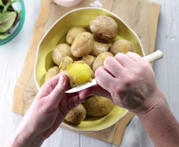 Kartoffeln, festkochend mit Schale, mittelgroß (5-6 cm), möglichst gleich groß (siehe Tipp)650 g