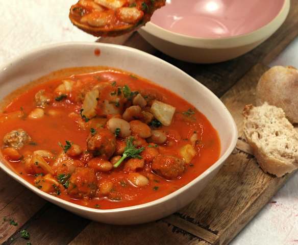 Weisse-Bohnen-Suppe mit Kartoffeln und Chorizo
