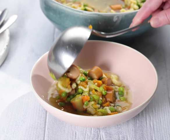 显示所有Gemüseeintopf mit Kartoffeln und Würstchen