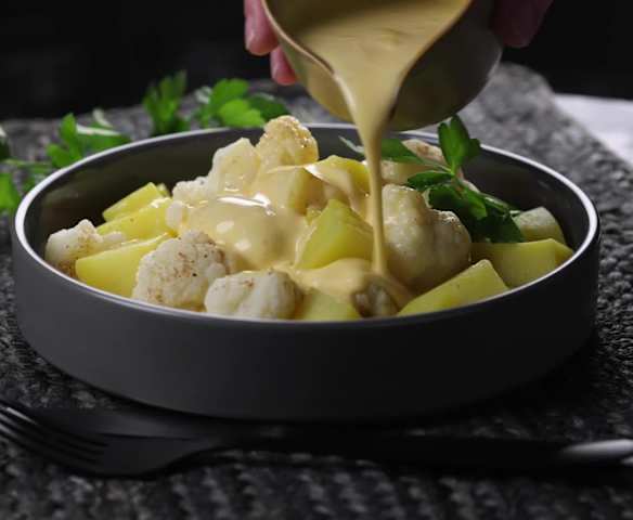 Kartoffeln mit Blumenkohl und Sauce Hollandaise für viele