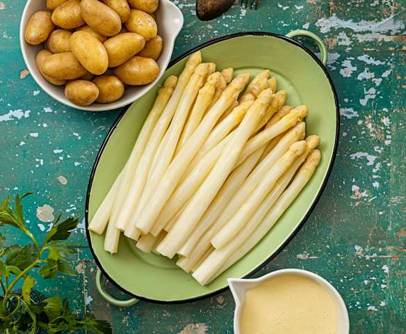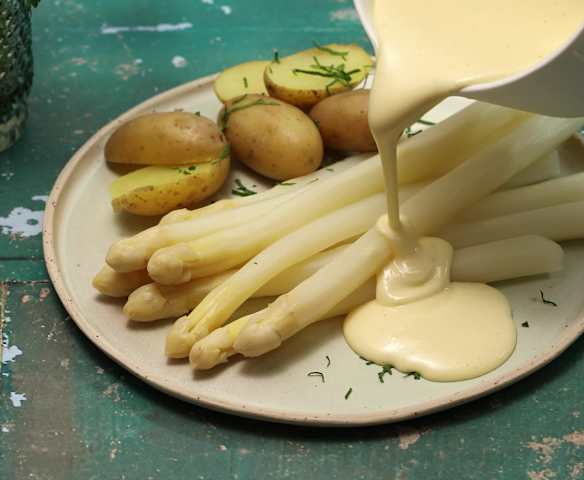 Spargeln mit Frühkartoffeln und Joghurthollandaise