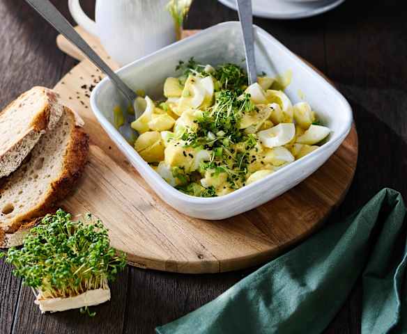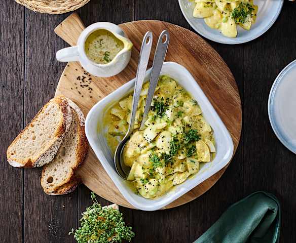 Champignon-Hummus-Salat mit Karamell-Dressing und Granatapfelkernen