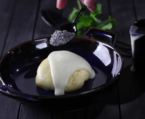 Mini-Germknödel mit Powidl, Mohnzucker und Vanillesauce