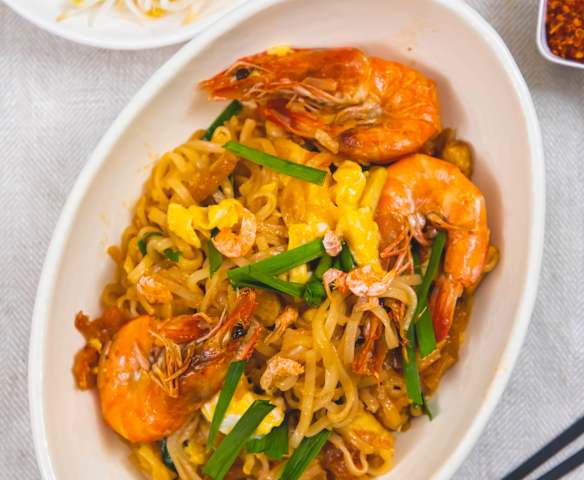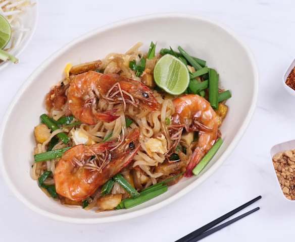 น้ำ (สำหรับแช่เส้นก๋วยเตี๋ยว,ใส่ให้ท่วมเส้นก๋วยเตี๋ยว)