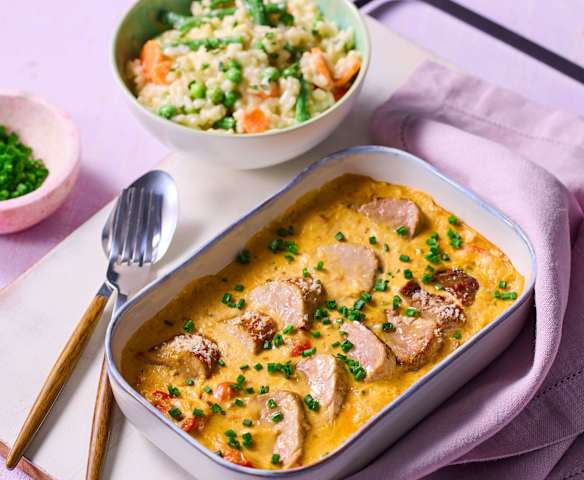 Frühlingsrisotto mit überbackenem Schweinefilet