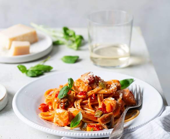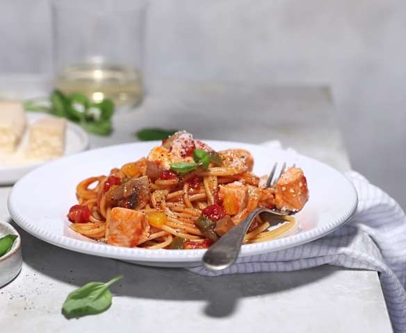 All-in-One Tomaten-Knoblauch Pasta mit Muscheln