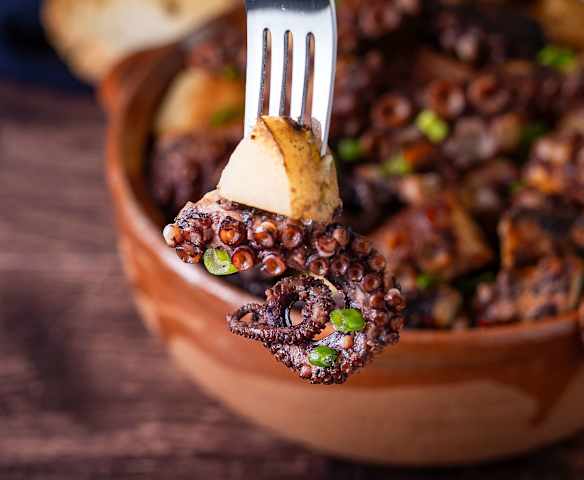 显示所有Sepia en salsa de verduras con guarnición de arroz