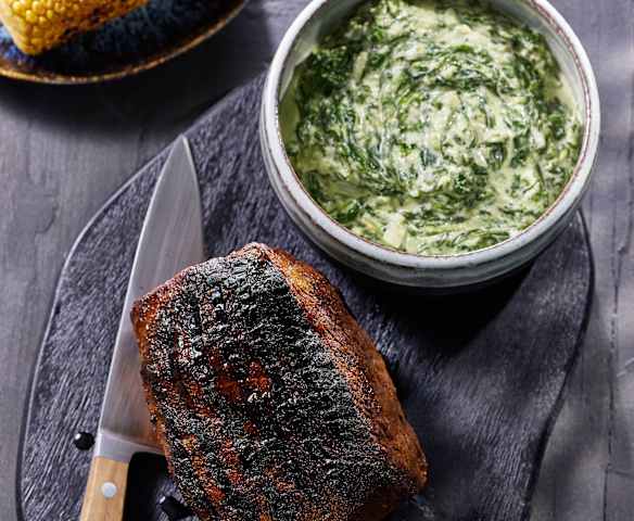 Gegrillte Rinderhüfte mit cremigem Spinat