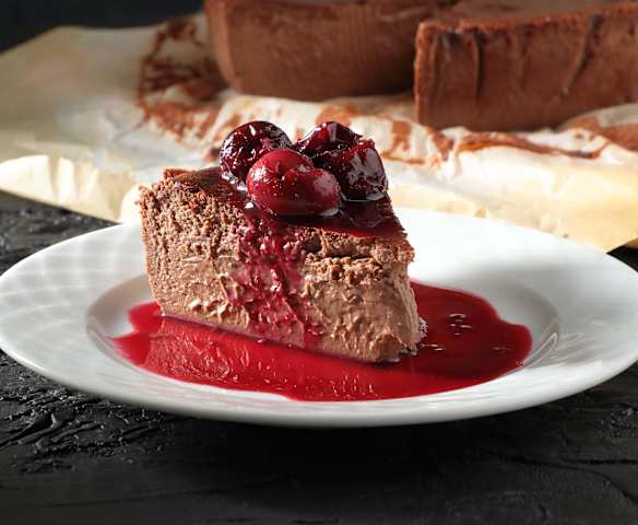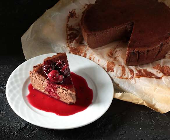 Βασκικό cheesecake με σοκολάτα και κομπότ κερασιού