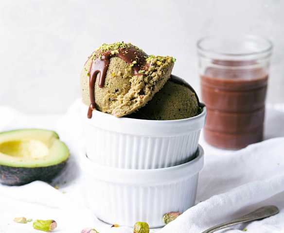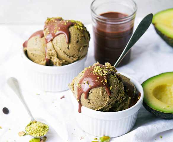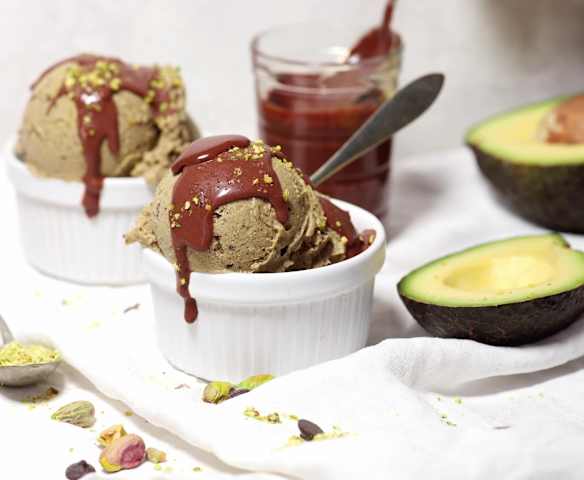 Avocado-ijs met Chocoladesaus