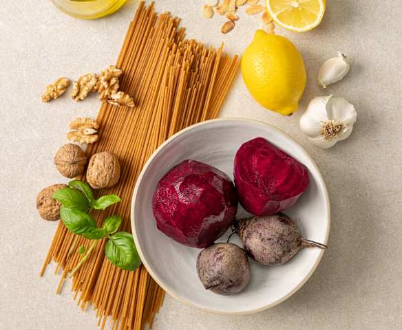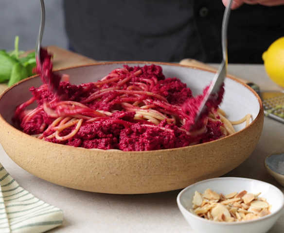Spaghetti mit Rote-Rüben-Walnuss-Pesto