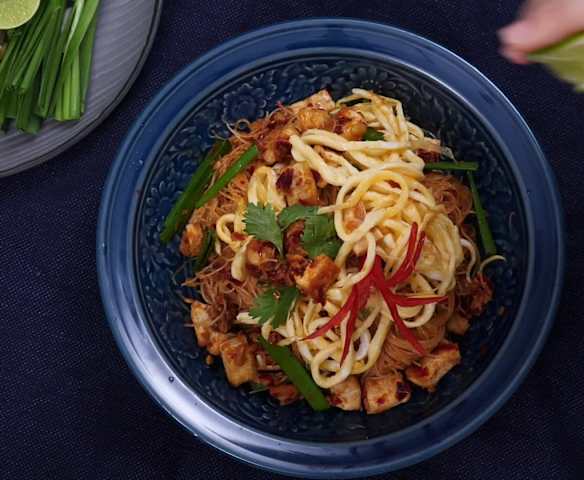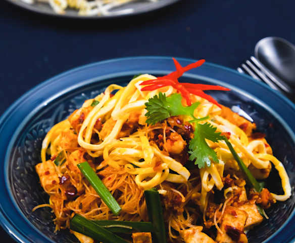 น้ำ (ปริมาณเพียงพอที่จะใช้แช่เส้นหมี่)