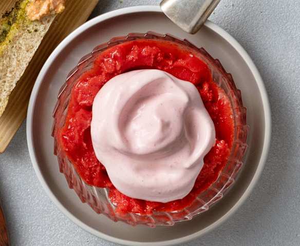 显示所有Menü: Vollwert-Focaccia mit Tomaten-Feta-Dip, Erdbeertraum