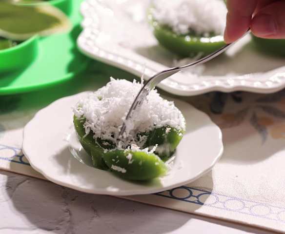 Kuih Kosui Pandan (Pandan Rice Cake with Grated Coconut)