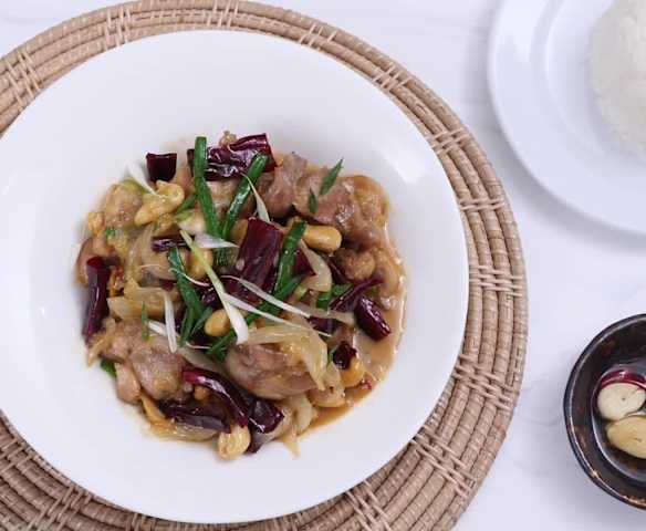 พริกแห้ง (แกะเมล็ด, หั่นท่อนสั้น,ทอด)10 เม็ด