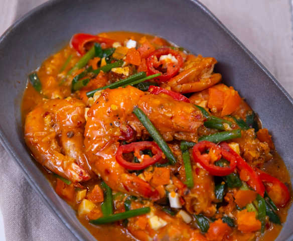 พริกแดงสด (หั่นแฉลบ)1 เม็ด