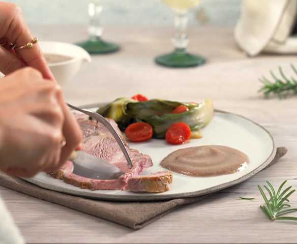 Arrosto di maiale con purea di mele e cipolle